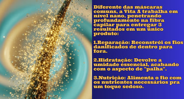 Descubra o poder transformador da MÁSCARA CAPILAR VITA A. Tratamento profissional que regenera, hidrata e nutre seus cabelos em apenas 10 minutos.